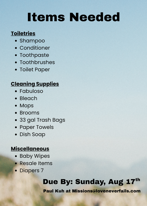 The Missions team is collecting donations to bring down to Mexico with them on their upcoming trip. These items will go to support the orphanage in its mission.